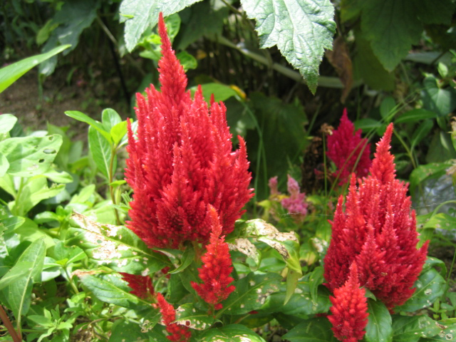 ヤリゲイトウ:ヒユ科 ケイトウの1変種。茎は直立して枝分かれしていません。花の色は赤・黄色があります。花をつける肉すいはとがったたまご形です。原産国はインド。